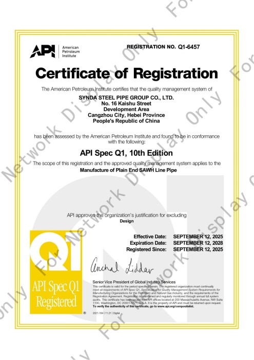Synda Steel Pipe Group Co., Ltd. was established in July 2003 and is located in Cangzhou Economic Development Zone, Hebei Province, China. It covers an area of 400,000 square meters and has a registered capital of 181 million yuan. It is an industrial and commercial enterprise that integrates the production and anti-corrosion processing of spiral steel pipes, as well as the operation and sales of seamless steel pipes, coils, strip steel and other types of steel. The company currently has over 400 employees, including more than 120 personnel with intermediate and senior technical titles.